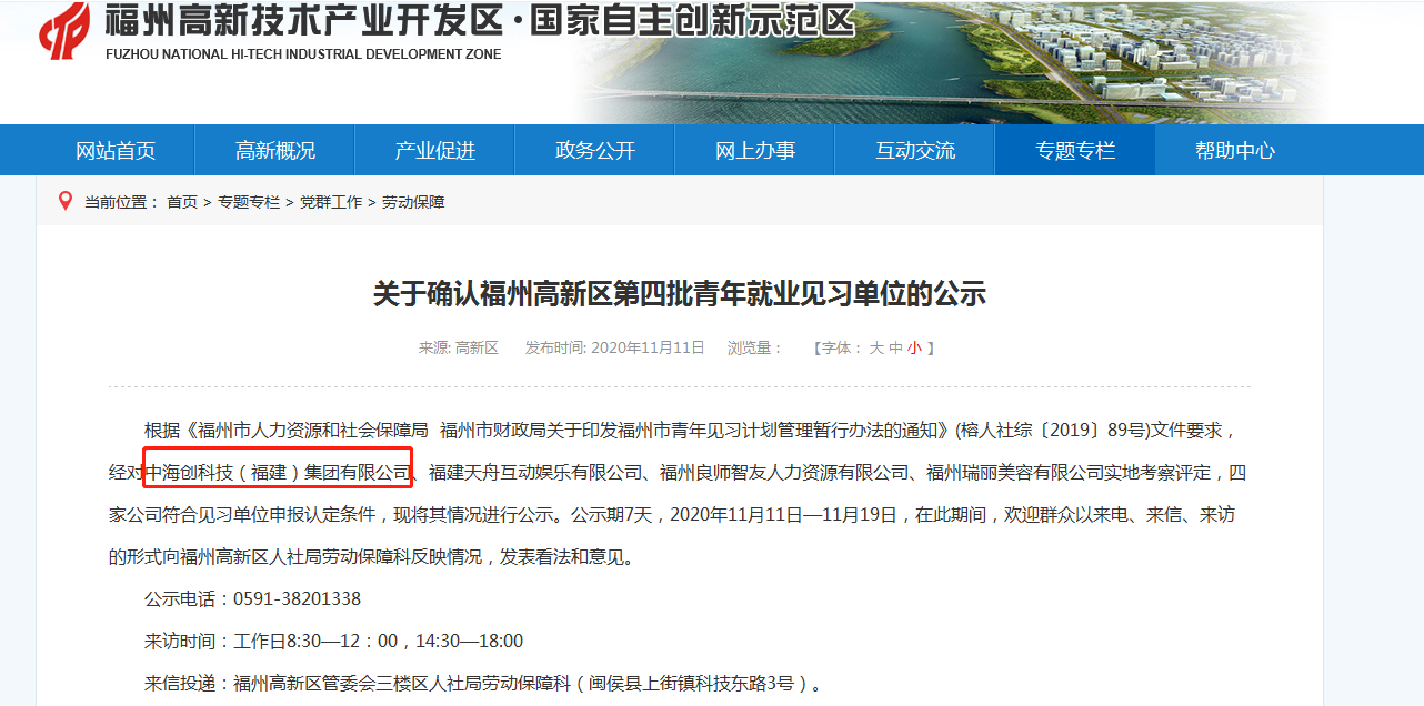 近日,根据《福州市人力资源和社会保障局 福州市财政局关于印发福州市青年见习计划管理暂行办法的通知》(榕人社综〔2019〕89号)文件要求,福州高新区经对多家企业实地考察审核,新利指定网站集团获评福州高新区第四批青年就业见习单位。